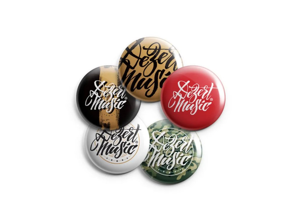 Sada 5 okrúhlych kovových odznakov so zatváracím špendlíkom