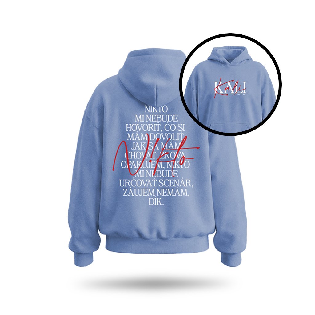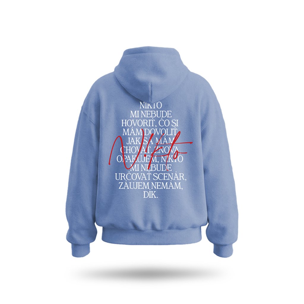 Unisex mikina PREMIUM N!KTO text - Bledomodrá